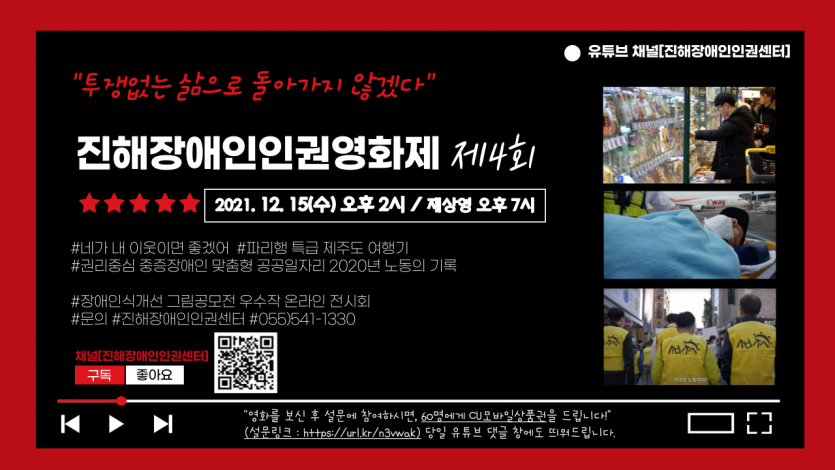 2021년 제 4회 진해장애인인권영화제<투쟁없는 삶으로 돌아가지 않겠다!>를 유트브 채널에서 개최합니다.