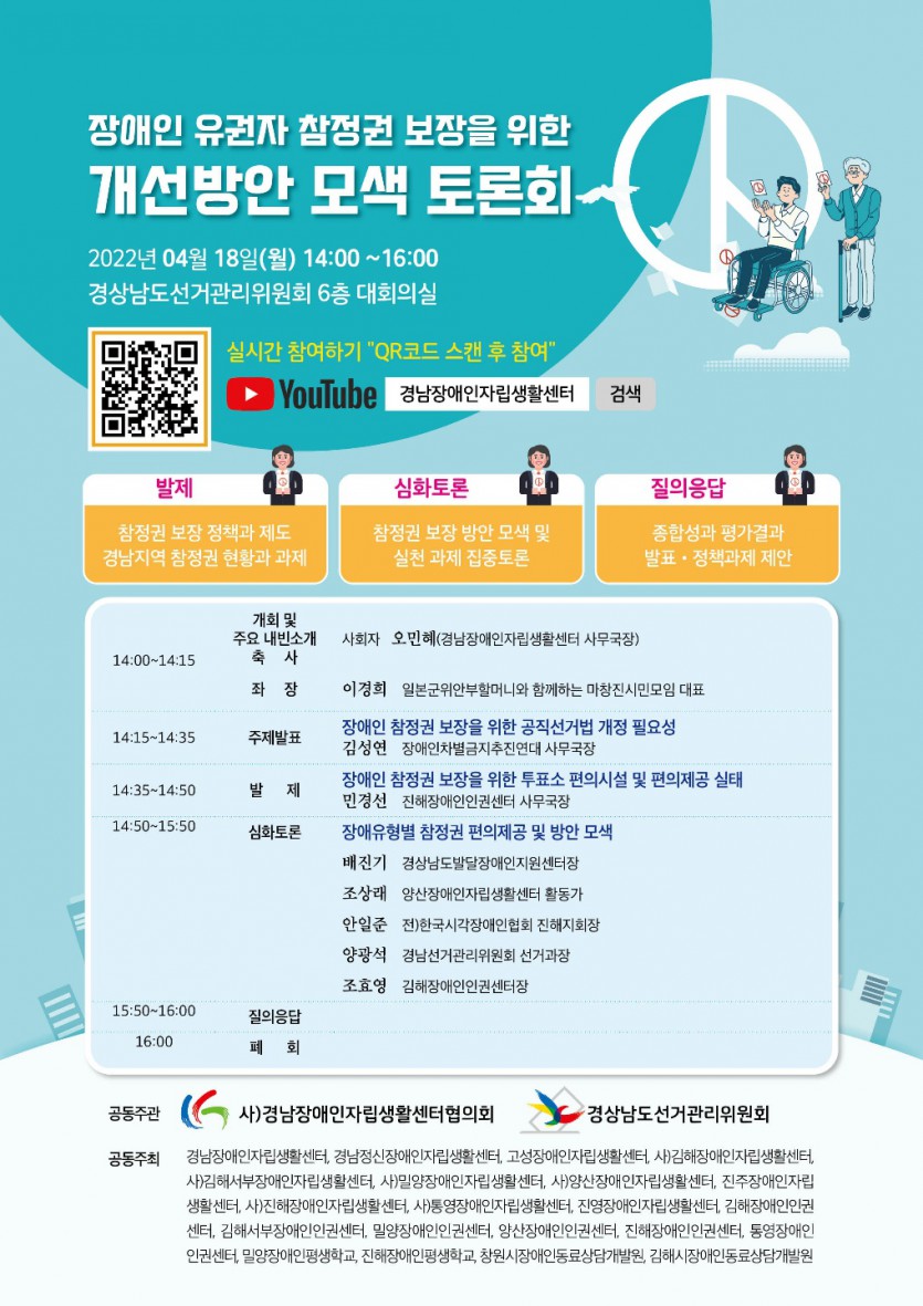 실시간참여: 포스터 QR코드로 접속 혹은 유듀브에서 "경남장애인자립생활센터"검색