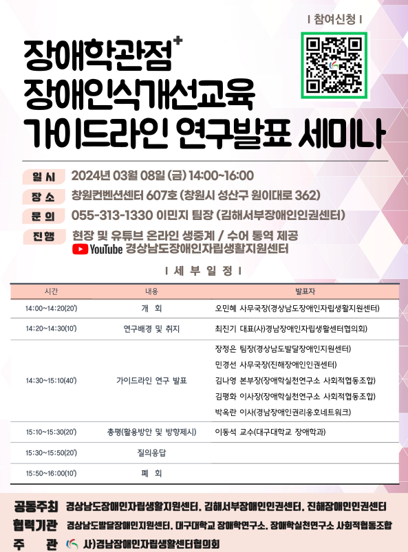 ○ 공동주최 : 진해장애인인권센터, 경상남도장애인자립생활지원센터, 김해서부장애인인권센터