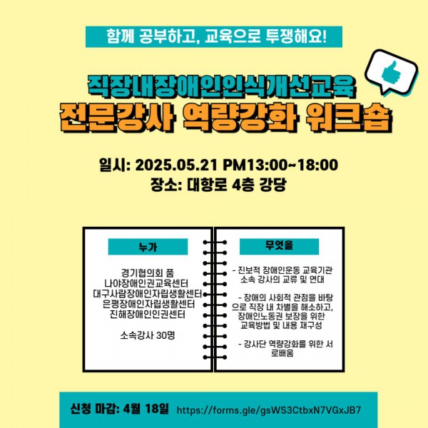20250521-유관기관 전문강사 장애인식개선교육 워크샵 페이지 정보 작성자 진해인권센터 댓글 0건 조회 47회 작성일 26-03-18 11:25 목록 답변 본문 . 이전글20250521-장애인인권 미디어교육 1강 26.03.18 다음글20250519-참정권 모니터링 사전회의 26.03.18 댓글 0 댓글목록 등록된 댓글이 없습니다.