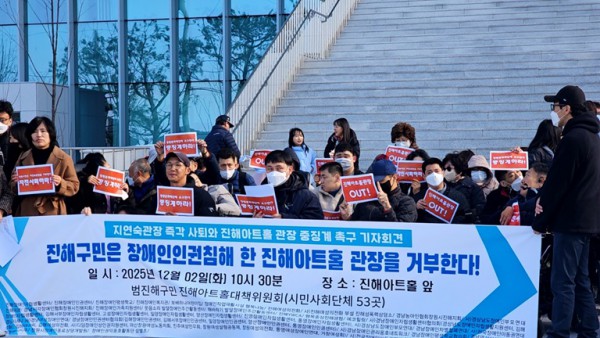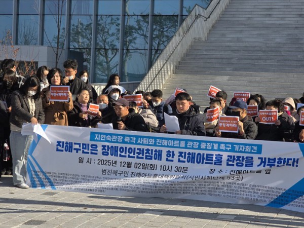 20251202-장애비하발언 진해아트홀 관장 사퇴 기자회견 페이지 정보 작성자 진해인권센터 댓글 0건 조회 8회 작성일 26-04-16 16:46 목록 답변 본문 . 이전글20251209-경남장애인복지관 직장내 장애인식개선 교육 26.04.16 다음글20251128-한국특수전지 직장내 장애인식개선 교육 26.04.16 댓글 0 댓글목록 등록된 댓글이 없습니다.